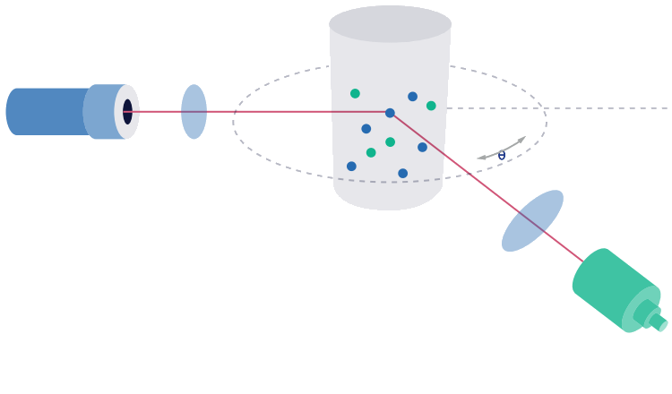 DLS是測(cè)量溶液中納米顆粒尺寸的重要技術(shù)。在布朗運(yùn)動(dòng)的驅(qū)動(dòng)下,粒子在溶劑中移動(dòng),導(dǎo)致散射光強(qiáng)的漲落。由于粒子的大小影響運(yùn)動(dòng),從而影響漲落的統(tǒng)計(jì),因此由強(qiáng)度相關(guān)函數(shù)可以得到擴(kuò)散系數(shù)和粒徑。與大多數(shù)DLS儀器不同的是,LS Spectrometer可以在很寬的散射角范圍內(nèi)(8°到155°),因此可以顯著提高測(cè)量精度。