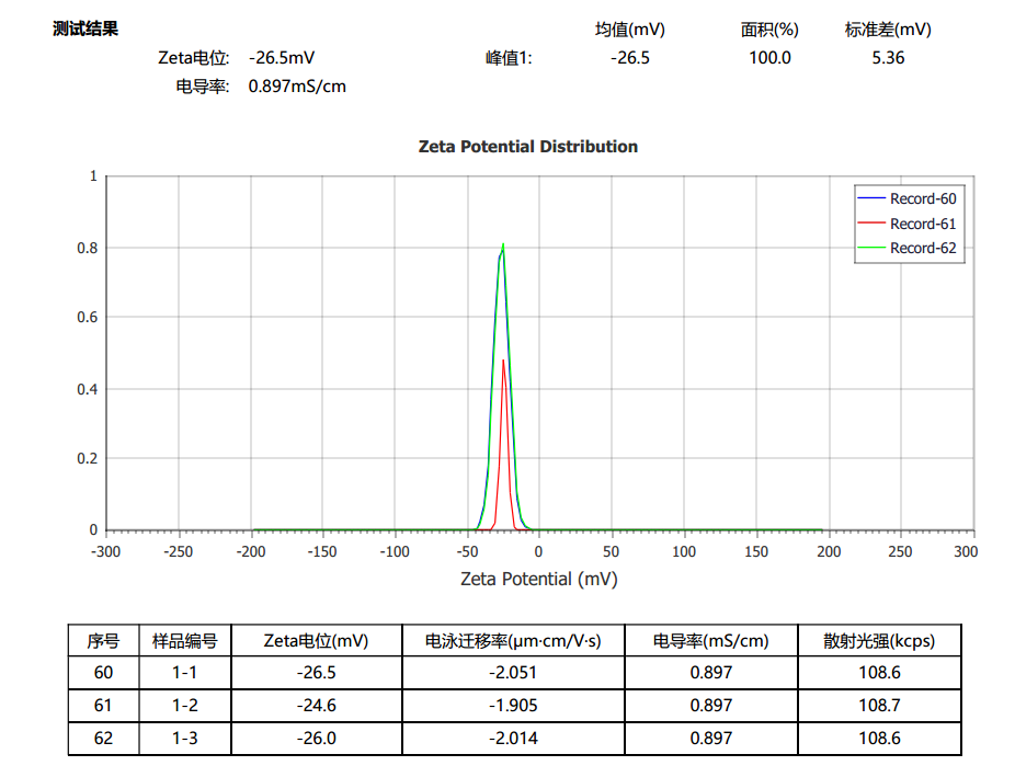 2. zeta電位測試結(jié)果展示